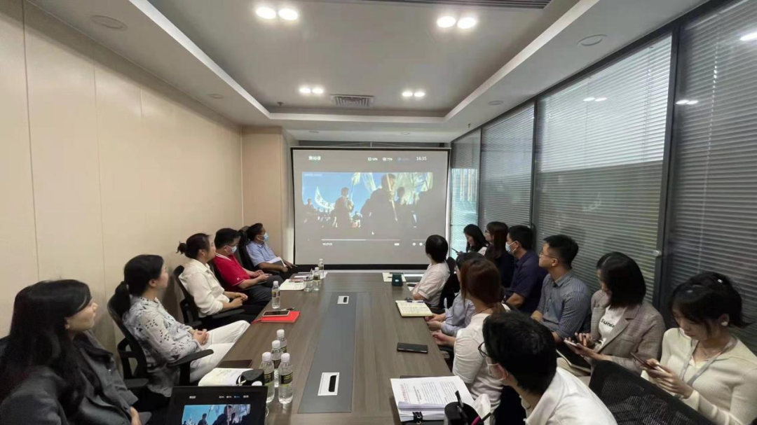 在會議室召開慶祝封頂會議,項目經理侯紅磊匯報項目施工情況,總監理工程師講話。